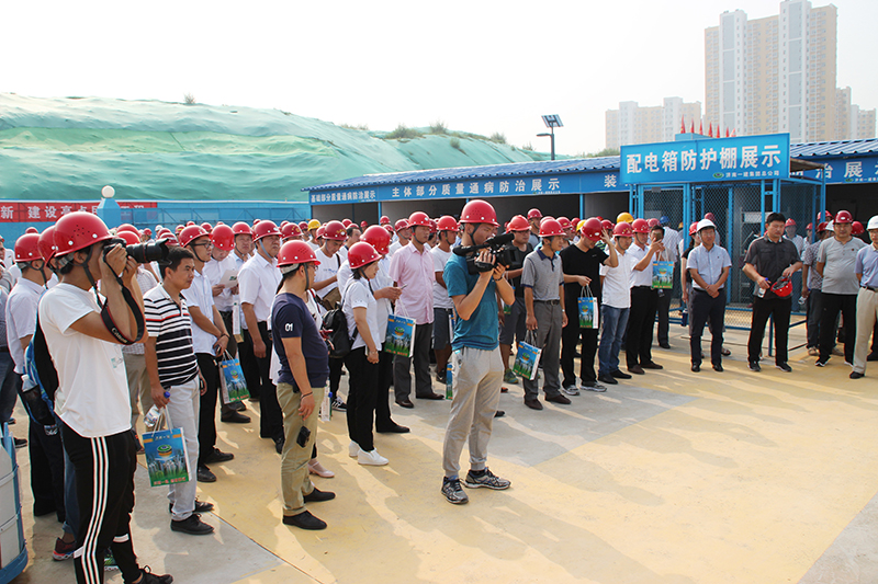 在我公司直属项目公司主任工程师穆忠翠的引领和讲解下,观摩团一行沿参观路线先后观摩了样板展示区、工地文化墙、生活区、直饮水系统、雨水收集再利用系统、绿色施工标牌、科教楼工程实体、办公区、职工之家等。现场的精细化管理和标准化设施、花园式办公区、绿色施工的各项举措、文化墙等给大家以强烈震撼,所到之处,观摩人员连连交口称赞,并纷纷举起手机、相机留存影像资料。